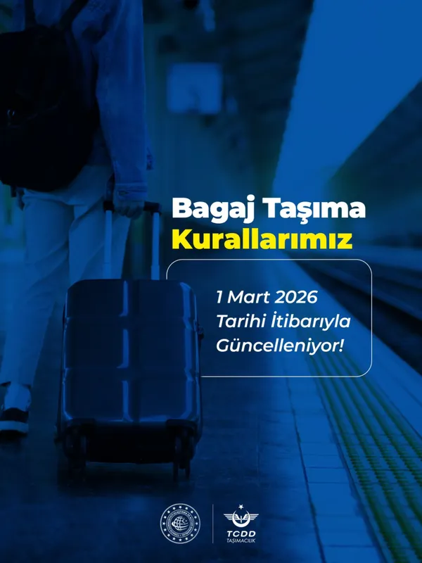 TCDD Taşımacılık A.Ş., YHT, anahat ve bölgesel trenlerde el bagajı taşıma kurallarını duyurdu. 1 Mart 2026 tarihi itibariyle ölçü ve ağırlık sınırlarına uymayan bagajlar trene kabul edilmeyecek.