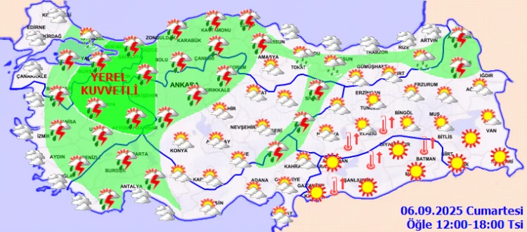 ANKARA (İGFA) - Meteoroloji Genel Müdürlüğü, 6 Eylül Cumartesi gününe ilişkin hava tahmin raporunu yayımladı.