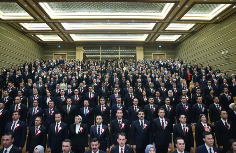 Cumhurbaşkanı Recep Tayyip Erdoğan, Cumhurbaşkanlığı Külliyesi’nde düzenlenen 110. Dönem Kaymakamlar Kurası Töreni’nde 16’sı kadın toplam 110 kaymakam adayına seslendi. Erdoğan, "Kibirden uzak durun, halkın duasını alın" dedi.