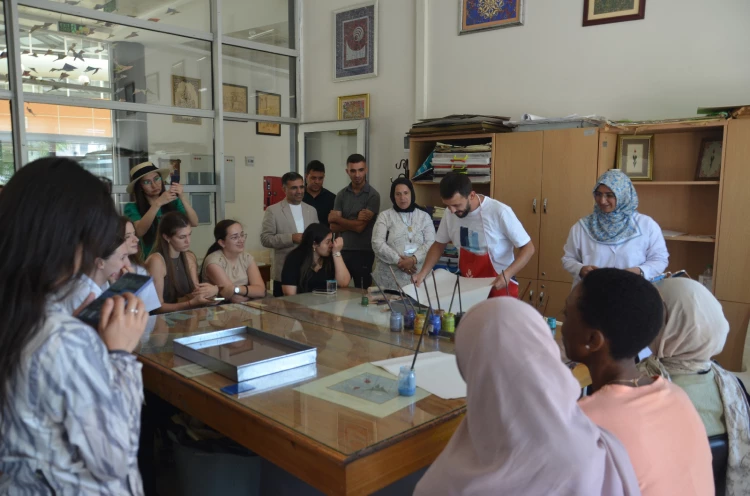 Malatya Turgut Özal Üniversitesi’nin rehberliğinde Malatya’da 20 gün kalacak olan misafirler, Büyükşehir Belediyesi Sanat Merkezi’ni ziyaret ettiler. Sanat Merkezi’nde Ebru Workshop etkinliğine katılan misafirler, keyifli vakit geçirdiler.