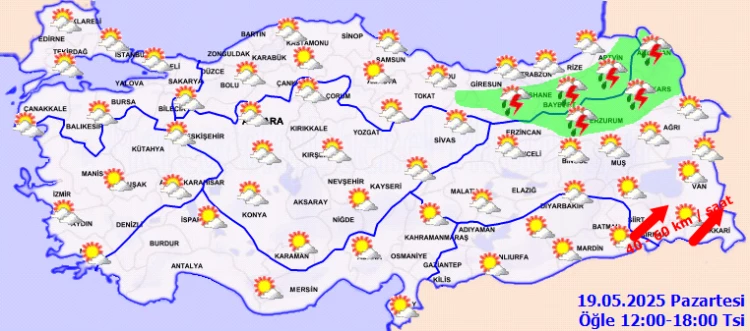 Meteorolojiye göre, Türkiye'nin kuzeydoğusu yağışlı olması, Doğu Karadeniz ve Ordu'da sağanak, Doğu Anadolu'nun güneydoğusunda toz taşınımı bekleniyor. Rüzgar güneyde kuvvetli esecek ve sıcaklık kuzeyde 3-5 derece düşecek.