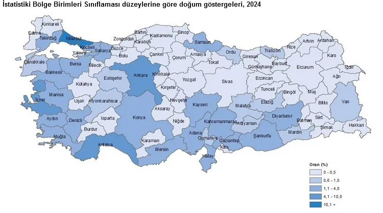İllere göre bakıldığında ise İstanbul, 2024 yılında doğan girişimlerin yüzde 25,8’ini aldı. İstanbul’u yüzde 7,5 ile Ankara ve yüzde 6,5 ile İzmir izledi.