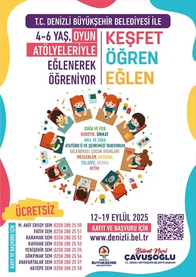 Denizli Büyükşehir Belediyesi, 4-6 yaş grubu çocukların gelişimine yönelik başlatacağı özel atölyeler için kayıt başvurularını almaya başladı.