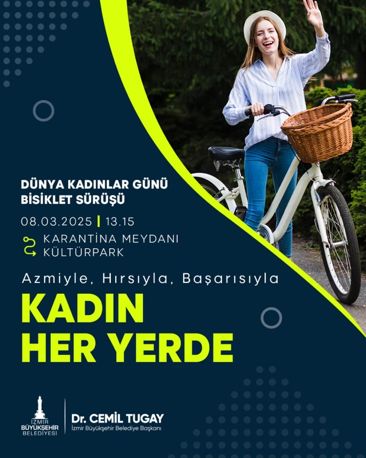 8 Mart Cumartesi Dünya Emekçi Kadınlar Günü’nde ise “Dünya Kadınlar Günü Bisiklet Sürüşü” yapılacak. Bike For Nature bisiklet grubu iş birliği ile yapılacak sürüş Karantina Meydanı ile Kültürpark arasında olacak ve 13.30’da başlayacak. Sürüşe katılan tüm bisikletliler, Kültürpark içindeki koşuya eşlik ederek tur atacak. İsteyen yurttaşlar, bisiklet turuna doğrudan Kültürpark’ta da dâhil olabilecek.