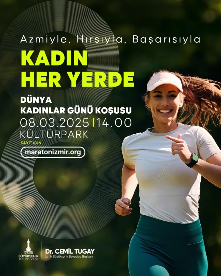 “Dünya Kadınlar Günü Koşusu” da 8 Mart’ta olacak. Saat 14.00’te Lozan Kapısı'ndan başlayacak koşu, 3,5 kilometrelik parkurun tamamlanmasının ardından yine aynı yerde son bulacak. Koşunun sonunda katılımcılara yönelik eğlenceli yarışmalar düzenlenecek, zumba dans atölyesi yapılacak ve sürpriz hediyeler verilecek. Koşuya katılmak isteyenler kayıt için maratonizmir.org sayfasını ziyaret edebilir. Yine aynı gün İzmir Engelsiz Sanat Derneği yürütücülüğünde Elim Sende Projesi'nin paydaşlarından İnşaat Mühendisleri Odası tarafından Tepekule İş Merkezi’nde 14.00-16.00 saatleri arasında "Beyaz Baretli Kadınlara Çanta Boyama Atölyesi" düzenlenecek.