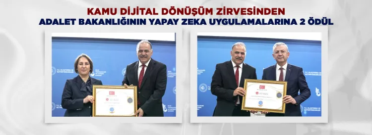 Adalet Bakanlığı, Yapay Zekâ Destekli Evrak Dağıtım Servisi (YEDES) ve Adli Sicil Bilgi Sistemi Projesi ile Kamu Dijital Dönüşüm Zirvesi’nde ödüle layık görüldü.
