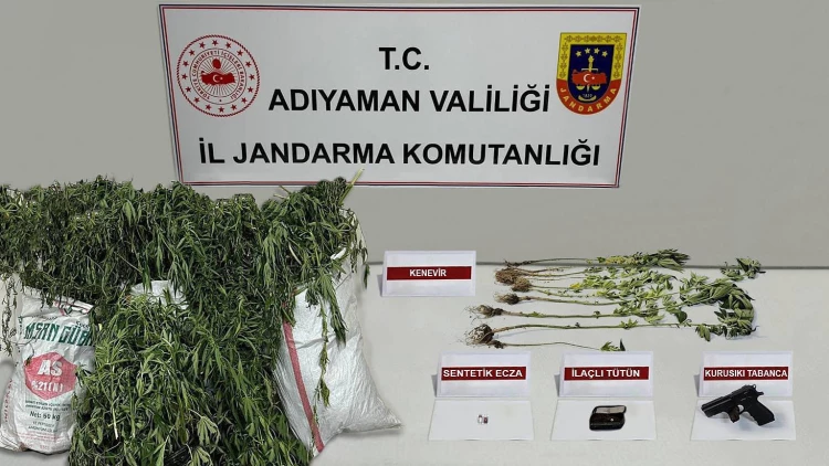 Adıyaman İl Jandarma Komutanlığı, uyuşturucuyla mücadele kapsamında düzenlediği operasyonlarda 10 yıl hapis cezası bulunan Y.A.’yı yakaladı ve 25 kg kubar esrar, 20 kök kenevir ile 2 gr bonzai ele geçirdi.
