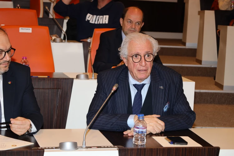 “Ekonominin nabzını tutan isimler, 2025’in zor geçeceğini Türkiye’nin 2026 yılında yatırım yapılabilir ülke notuna ulaşabileceğini dile getiriyorlar” tespitinde bulunan Eskinazi, “2025 yılında iş dünyası olarak bizlerin alacağı pozisyon, “Ayağımızı yorganımıza göre uzatmak değil, cenin konumunda kalmak olacak.” Tabii biz bu haldeyken kamunun da tasarruf tedbirlerine sadık kalması gerekiyor. Kamudaki yaklaşım, “Orucu ihracatçı, işçi, memur, sanayici tutsun, iftarı ben yapayım” şeklinde olmamalı” diye konuştu.