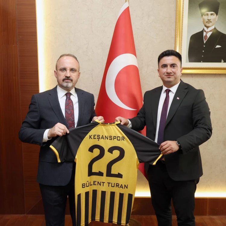 Heyet, İçişleri Bakan Yardımcısı Bülent Turan’ı ziyaret ederek Keşanspor formasını hediye etti.