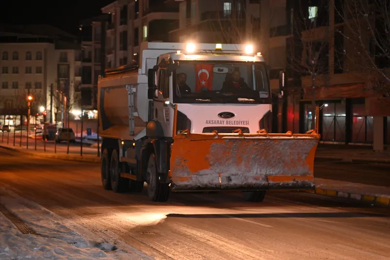 Aksaray Belediyesi, 36 araçlık karla mücadele filosu ve 240 personeliyle gece boyunca sahada görev aldı. Ana arterler, hastane güzergâhları, kavşaklar, cadde ve sokaklarda kar temizleme, tuzlama ve kontrol çalışmaları titizlikle gerçekleştirildi. Belediyenin 900 tonluk tuz stoğu kullanılarak yollar, sokaklar ve kaldırımlar tuzlandı.