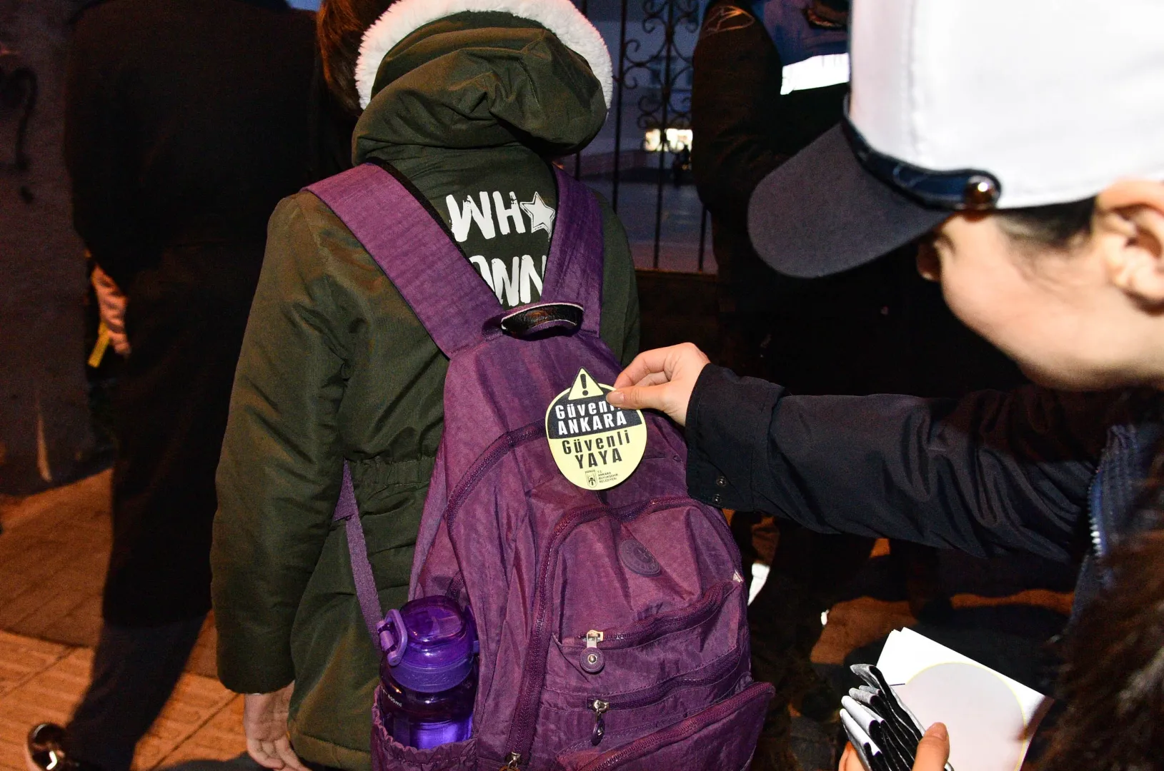 Zabıta Daire Başkanlığı tarafından “Güvenli Ankara, Güvenli Yaya” sloganıyla gerçekleştirilen uygulama ile okullarına yürüyerek giden öğrencilerin sürücüler tarafından daha kolay fark edilmesi ve trafikte yaşanabilecek olası kazaların önüne geçilmesi hedefleniyor. Uygulama kapsamında zabıta ekipleri sabahın erken saatlerinde kent genelindeki okulların önüne giderek öğrenci ve velileri bilgilendiriyor. Ardından öğrencilere ücretsiz reflektörlü kol bantları ile çantalarına yapıştırılmak üzere reflektörlü stickerlar dağıtılıyor.