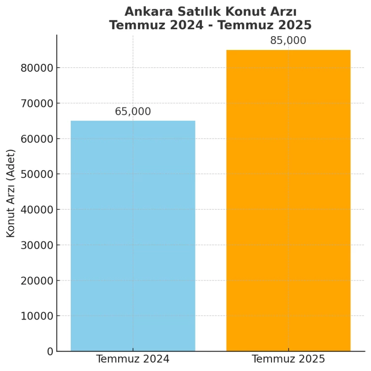 Gayrimenkul ekonomisi ve pazarlama alanında faaliyet gösteren Gayrimenkul PR’ın analizine göre, 2024’te 65 bin civarında olan satılık konut arzı, 2025 Temmuz ayı itibarıyla yüzde 30,77 artarak 85 bine yükseldi.