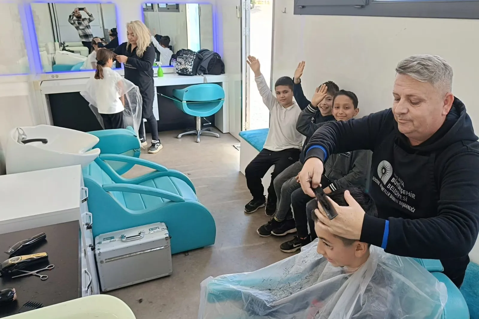 Antalya Büyükşehir Belediyesi Sosyal Hizmetler Dairesi Başkanlığı’na bağlı Mobil Kuaför Tırı, kırsal mahallerde vatandaşlara ulaşmaya devam ediyor. Mobil Kuaför Tırı, Elmalı ve Kaş’ta okullara giderek öğrencilerin ücretsiz saç kesimi ve kişisel bakımlarını gerçekleştirdi.