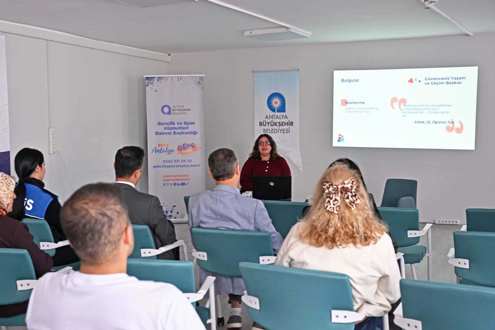 Antalya Büyükşehir Belediyesi Gençlik ve Spor Hizmetleri Dairesi Başkanlığı’na bağlı olarak hizmet veren HUB Antalya Girişimcilik Merkezi’nde yapılan toplantıda hem araştırma sonuçları hem de forumun sonuçları temsilcilerle paylaşıldı.