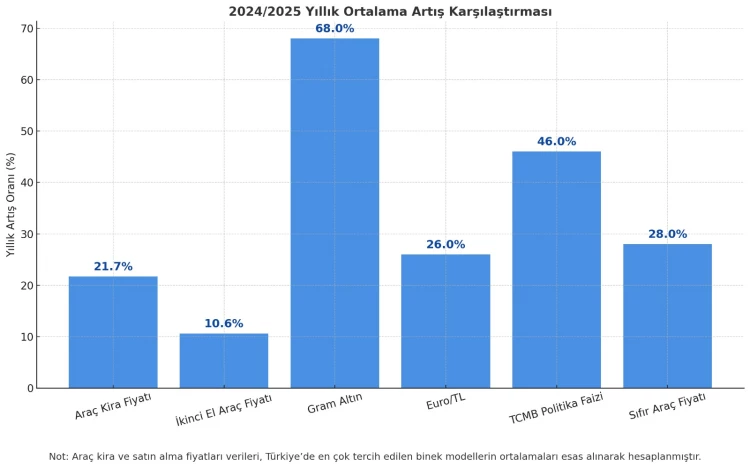 2024–2025 döneminde enflasyon ve maliyetler artarken, araç kiralama fiyatlarındaki düşük artış dikkat çekiyor. Tüm maliyet kalemlerinde yüzde 50’ye varan artışlar yaşanırken, araç kiralama fiyatlarındaki artış yalnızca ortalama yüzde 20 seviyesinde kaldı.