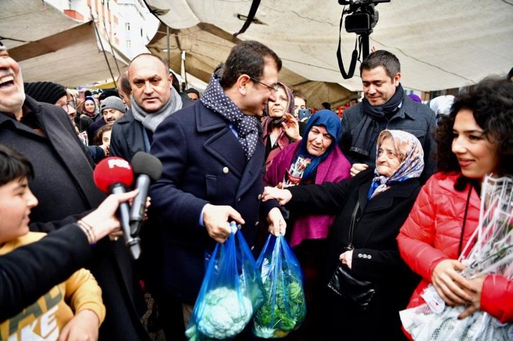 14 Şubat Sevgililer Günü?nde pazara gelerek halkın arasına karışan CHP İstanbul Büyükşehir Belediye Başkan adayı Ekrem İmamoğlu, alışveriş yapmak için pazara gelen kadınları karanfillerle karşıladı. Bahçelievler Çavuşpaşa Semt Pazarı?na gelen kadınlar, İmamoğlu?nu karşılarında görünce şaşkınlıklarını gizleyemedi. Pazar girişinde İmamoğlu?nun uzattığı karanfilleri alan kadınların başkan adayıyla bir süre sohbet etmesi renkli anlara sahne oldu. Kadınların Sevgililer Günü?nü kutlayan İmamoğlu, pazar esnafıyla da sohbet ederek, destek istedi.