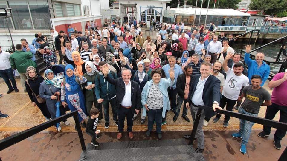 Küçük büyük çok sayıda kişinin buluştuğu iskeleye gelen Cumhur ittifakı Belediye Başkan Adayı Salih Bayraktar, burada vatandaşları selamladı. Vatandaşlarla sohbet eden ve zaman zaman fotoğraf çektiren Bayraktar, daha sonra miting alanına gitmek üzere tekneye bindi. İskelede toplanan vatandaşlar ise buradan miting alanına doğru tekne ile hareket etmeye başladı.