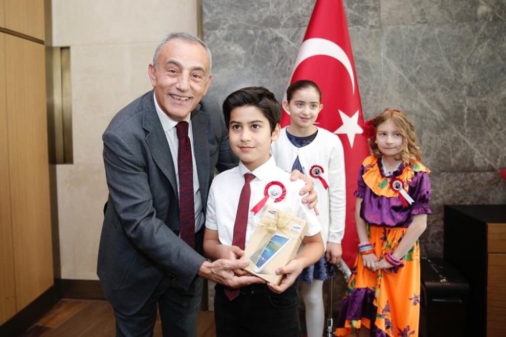 23 Nisan Ulusal Egemenlik ve Çocuk Bayramı dolayısıyla Küçükçekmece TOKİ Şehit Er Yılmaz Özdemir İlkokulu öğrencileri Küçükçekmece Belediye Başkanı Kemal Çebi?yi makamında ziyaret etti.