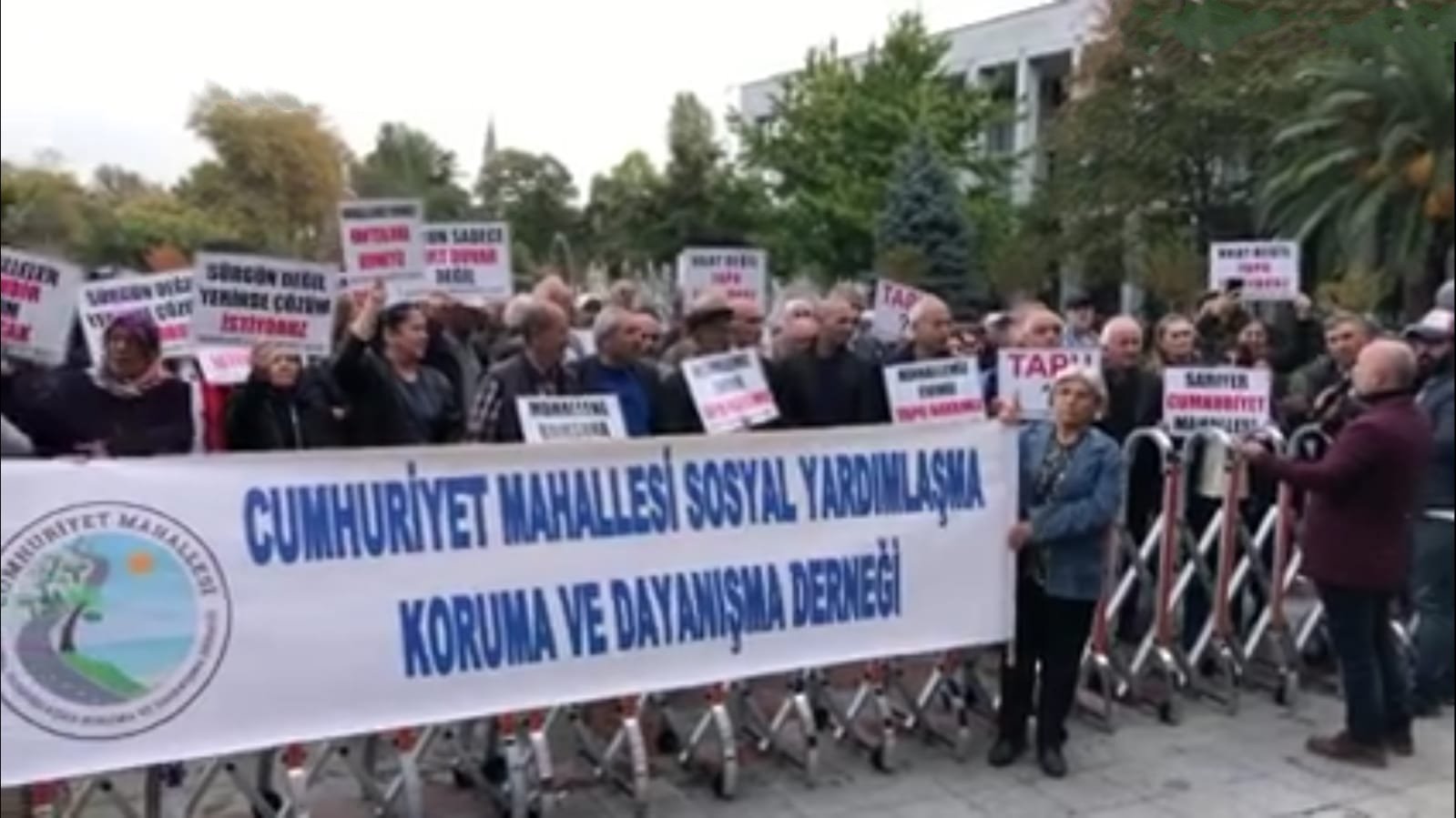 Kalabalık bir toplulukla Saraçhane`de İBB önünde toplanan Cumhuriyet Mahallesi sakinleri burada imzaladıkları dilekçeleri İBB`ye teslim etti. Mahalle Dernek ve Kooperatif yetkilileri burada yaptıkları açıklama ile 2981 sayılı yazadan kaynaklanan haklarının sonuna kadar takipçisi olacaklarını belirterek yapılan yanlıştan mutlaka dönüleceğine inandıklarını belirtti.