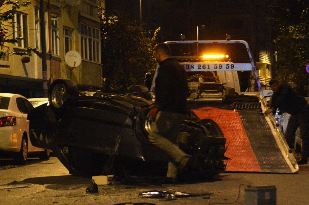Kaza, gece saat 02.24?te Küçükçekmece İlçesi Fatih Mahallesi Prof. Dr. Aziz Sancar Caddesi üzerinde meydana geldi. Edinilen bilgiye göre polisin ?dur? ihtarına uymayan sürücüsü öğrenilemeyen 45 AF 083 plakalı otomobil, kovalamaca sırasında Fatih Mahallesi Prof. Dr. Aziz Sancar Caddesi üzerinde takla attı.