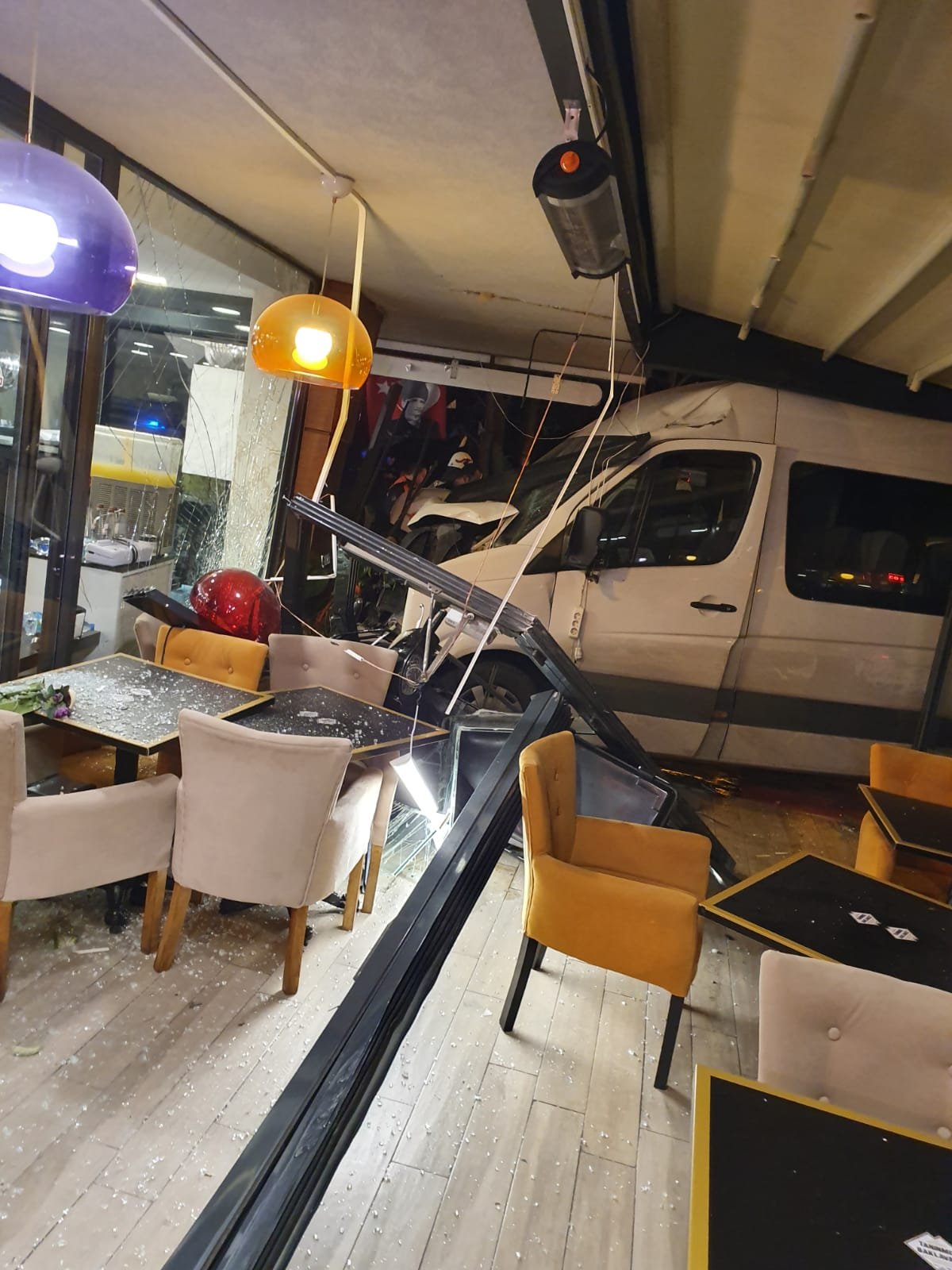 Görgü tanıklarının ifadesine göre dün gece işletmenin kapanmasından beş dakika sonra 00.05`de THY servisi yapan 34 LAU 446 plakalı servis minibüsü sollama yaptığı esnada direksiyon hakimiyetini kaybederek Gaziantepli Tanınmış Baklavacının işletmesine girdi. Can kaybının olmadığı olayda işletmede büyük zarar meydana geldi. İşletmeci Bayram Tiryaki yaptığı açıklamada işyerimizi kapatıp ayrıldıktan beş dakika sonra olay meydana geliyor, büyük oranda maddi hasarımız var çok şükür herhangi bir can kaybımız yok dedi.