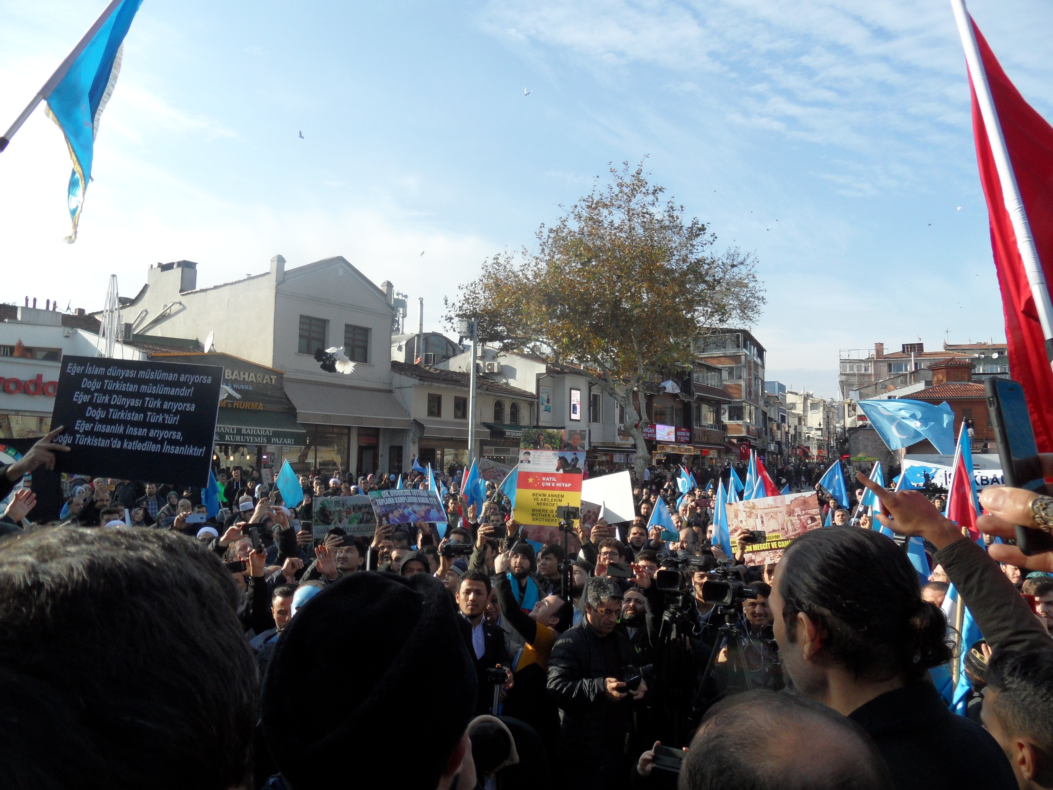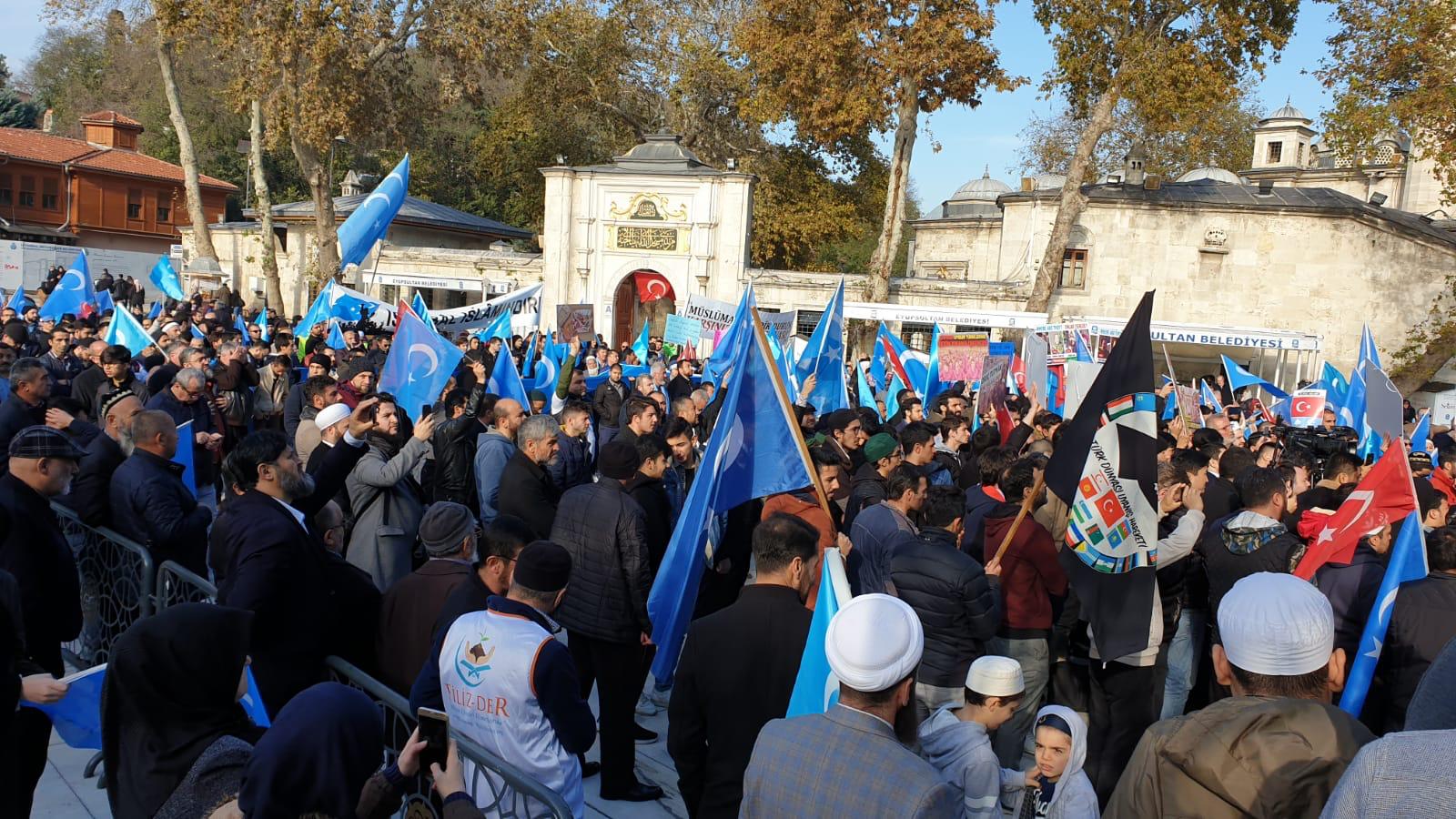 Konuşmasının ardından Doğu Türkistan?da yaşanılan zulümün bitmesi için dua eden Yıldırım?ın duası boyunca eyleme katılanlar gözyaşına boğuldu ve semaya açılan eller Allah?tan yaşanılan zalimlerin bitmesi için yardım istedi. Protesto eylemi, özgürlüğün temsili olan güvercinlerin uçurulmasıyla sona erdi.