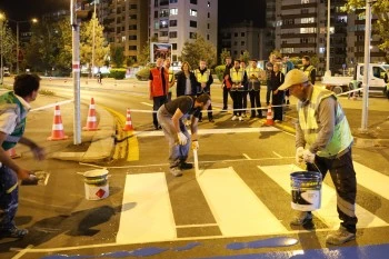 Eskişehir’in en yoğun ulaşım akslarından biri olan Atatürk Bulvarı’nda, 1 Temmuz’da başlayan trafik düzenleme ve üst yapı yenileme çalışmaları tamamlandı. Bulvar, yol çizgi boyama çalışmalarının ardından kullanıma açıldı. Çalışmaları yerinde inceleyen Büyükşehir Belediye Başkanı Ayşe Ünlüce, emekleri için personele teşekkür ederek, “Şehrimizin en çok kullanılan kavşaklarından birinde daha yaptığımız düzenlemelerle trafiği rahatlatıyor, hem yaya, hem bisikletli hem de sürücülerin güvenliğini artırıyoruz. Kent ulaşımını daha güvenli, konforlu ve çevreci hale getirmek için çalışmalarımız devam edecek.” dedi.