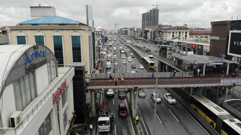 Avcılar’de E-5 üst geçide bağlı kablolar halk otobüsünün üzerine düştü