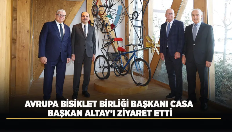 2026 UEC Elit Avrupa Pist Bisikleti Şampiyonası için Konya’da bulunan Avrupa Bisiklet Birliği Başkanı Enrico Della Casa ve Türkiye Bisiklet Federasyonu Başkanı Emin Müftüoğlu, Konya Büyükşehir Belediye Başkanı Uğur İbrahim Altay’ı ziyaret etti.