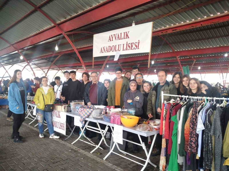 Ayvalık Anadolu Lisesi Sosyal Sorumluluk Kulübü öğrencileri; okul müdürü Hüseyin Aday, kulüp danışman öğretmenleri Özgül Uysal ile Tuba Soyalp rehberliğinde ilçeye gelen okul öncesi ve ilkokul öğrencilerinin ihtiyaç duyacağı eğitim materyallerini sağlamak amacıyla bir satış standı düzenledi.