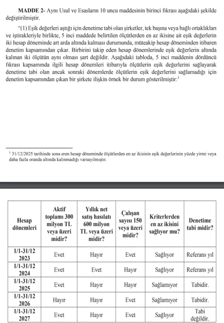 Karar, şirketlerin bağımsız denetime tabi olup olmayacağını belirleyen mali sınırları yükselterek, daha fazla işletmenin denetime dahil edilmesini hedeflerken, bu güncelleme, mali şeffaflığı artırmak ve denetim süreçlerini ekonomik koşullara uyumlu hale getirmesi beklendi.