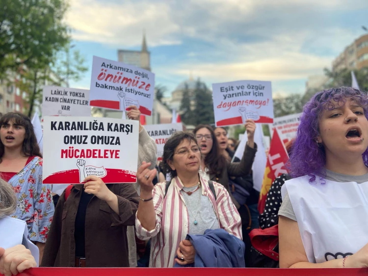 Kadın Dayanışma Komiteleri, İstanbul Şişli’de eski kocası tarafından kaçırılmaya çalışılırken tabancayla vurularak öldürülen Bahar Aksu için eylem yaptı. Kadınlar, “Düzeniniz batsın, kadınlar yaşasın” sloganıyla şiddete ve eşitsizliğe karşı mücadele çağrısı yaptı.