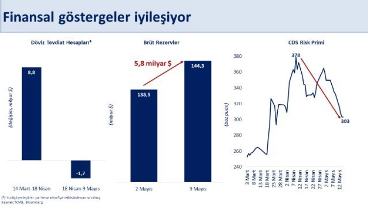 Bakan Şimşek, zamanında atılan doğru adımların etkisiyle yabancı para cinsi mevduat (DTH) talebi ve ülke risk primi (CDS) gerilerken, Merkez Bankası brüt rezervlerinin haftalık 5,8 milyar dolar arttığını belirtti.