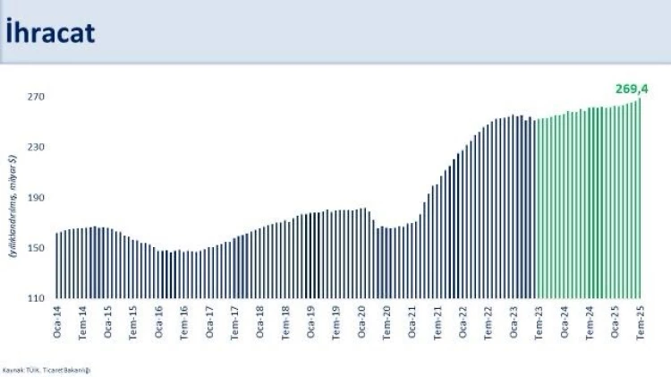 Hazine ve Maliye Bakanı Mehmet Şimşek, Temmuz 2025’te ihracatın yıllık yüzde 11 artarak 269,4 milyar dolara ulaştığını ve tarihinin en yüksek aylık seviyesine eriştiğini duyurdu. Küresel belirsizliklere rağmen bu performans, Türkiye’nin ihracat dinamizmini ve pazar çeşitlendirmesindeki başarısını yansıtıyor.