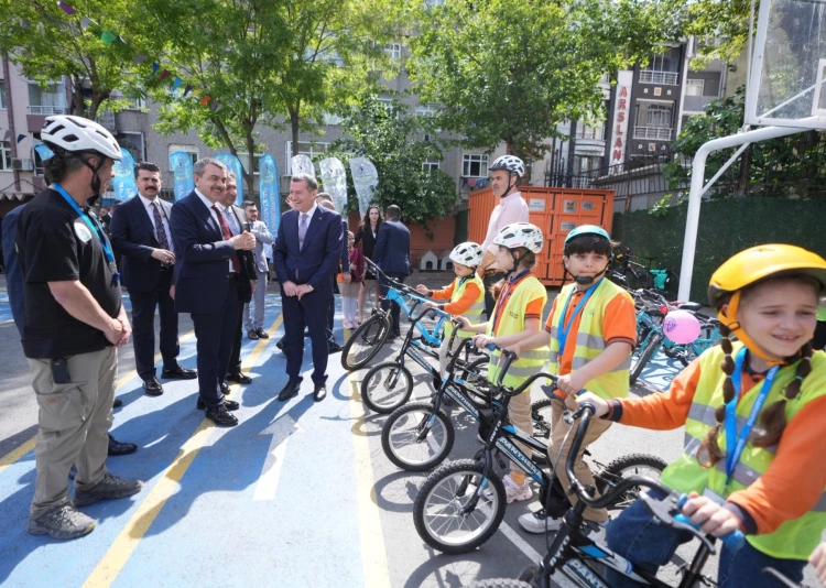 Bakan Tekin, her hafta 1 saat beden eğitimi dersi kapsamında öğrencilere güvenli sürüş, trafik kuralları ile ilk yardım gibi temel bilgilerin de verildiği bisiklet sürme etkinliğine katıldı.