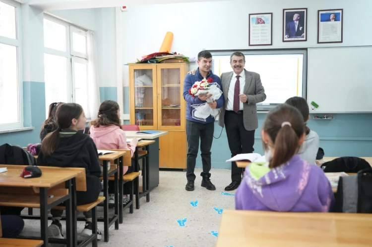 Sungurlu Şehit Peşmen İlkokulu ve Ortaokulu'nu ziyaret eden Bakan Tekin, burada ilk olarak sınıfları gezerek öğrencilerle sohbet ederek taleplerini dinledi. İngilizce öğretmeni Eşref Doğan'ın doğum günü dolayısıyla elinde çiçek ve pastayla sınıfa sürpriz bir şekilde giren Bakan Tekin'i gören öğretmen ve öğrenciler büyük şaşkınlık yaşadı.