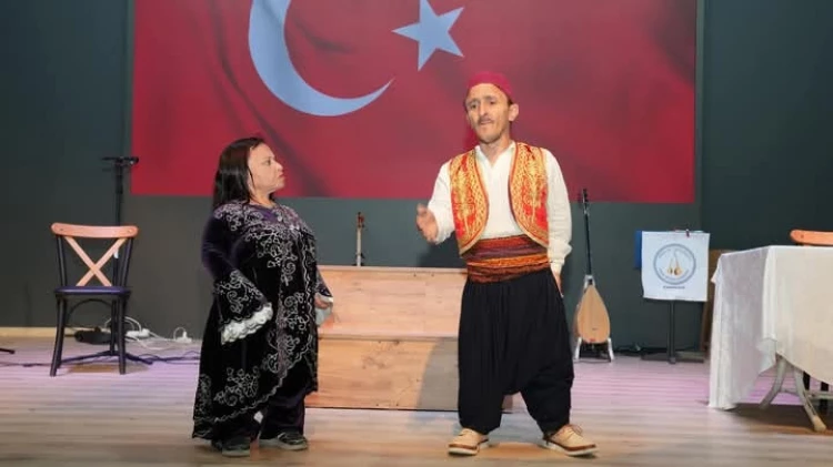 Oyun sonunda Ercan Kubaş Sanat Tiyatrosu ekibine çiçek ve teşekkür plaketi takdim edildi.