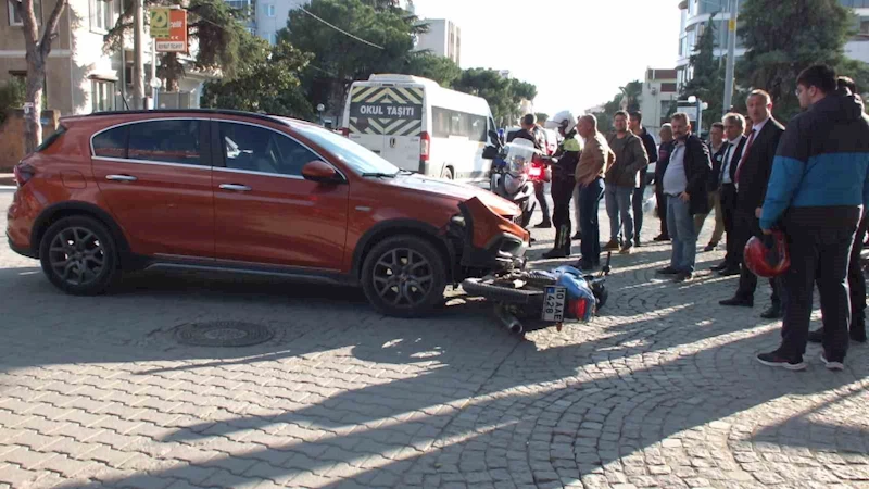 Balıkesir’in Burhaniye ilçesinde otomobille çarpışan motosiklet sürücüsü yaralandı.
