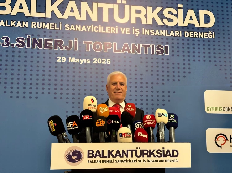 Ömer AYDOĞDU - gazeteabc.com / BURSA (İGFA) - Balkan Rumeli Sanayicileri ve İş İnsanları Derneği (BALKANTÜRKSİAD), 33. Sinerji Toplantısı’nı Kuzey Kıbrıs Türk Cumhuriyeti (KKTC) Başbakanı Ünal Üstel’in katılımıyla Bursa Sheraton Otel’de gerçekleştirdi. İş dünyasının yoğun ilgi gösterdiği toplantıda, Türkiye-KKTC ekonomik ve kültürel iş birliği masaya yatırıldı.