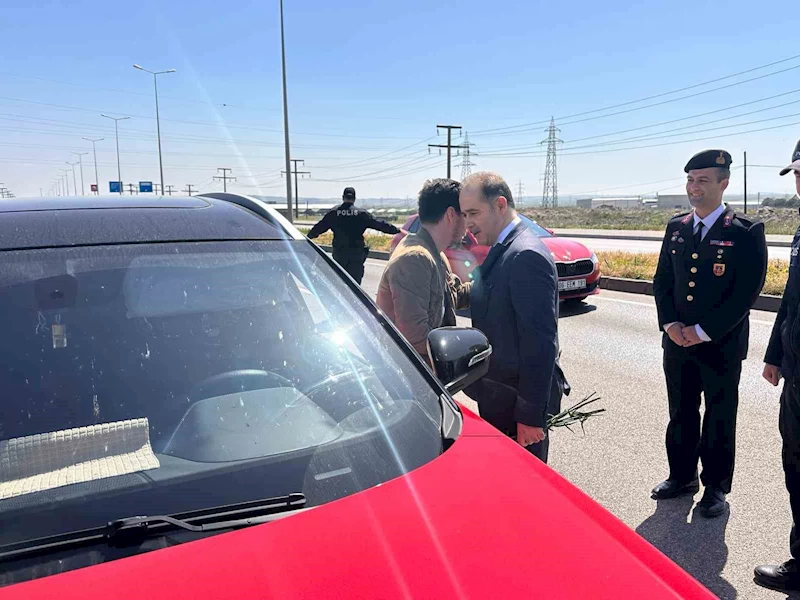 Kaymakam Aksakal, sürücülere yönelik olarak yaptığı konuşmada, "Dokuz günlük Ramazan Bayramı münasebetiyle seyahat edecek vatandaşlarımız, sevdiklerinize sağlıkla kavuşmanız için lütfen emniyet kemerinizi takın. Hız limitlerine ve trafik kurallarına uyun" dedi ve tüm görevli personel ile vatandaşların bayramını kutladı.