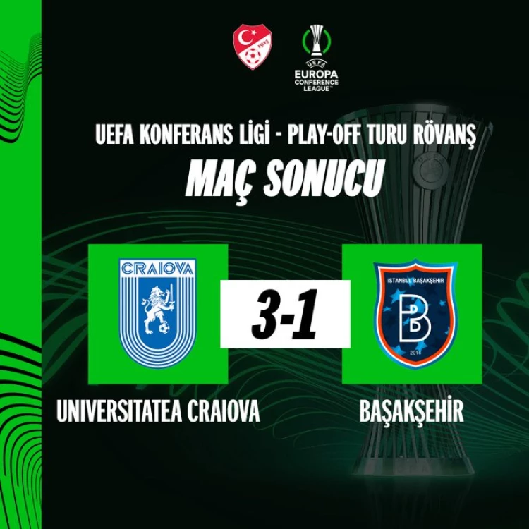 Başakşehir FK, UEFA Avrupa Konferans Ligi’nde Craiova’ya bu sonuçla yenilerek elendi.