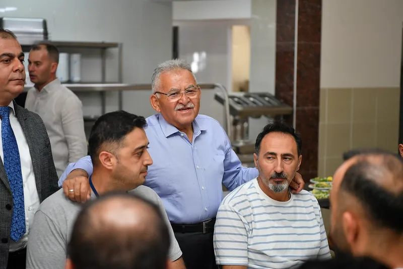 KASKİ’nin hizmet binasında sürdürülen çalışmaları yerinde inceleyen Başkan Büyükkılıç, öğle arasında personelle aynı sofrada buluşarak çalışanlara teşekkür etti. Yemek sırasında personelin sofrasına misafir olan Büyükkılıç, “Gayretli çalışmalarınız için her birinize teşekkür ediyor, Rabbimden kolaylıklar diliyorum” ifadelerini kullandı.