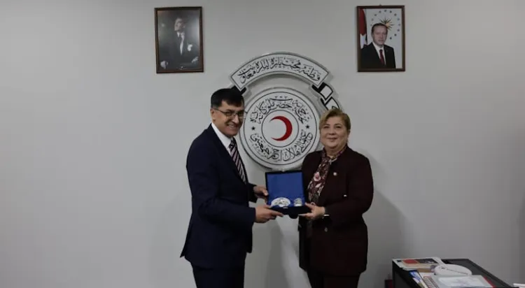 KÜTAHYA (İGFA) - Kütahya Belediye Başkanı Eyüp Kahveci, Türk Kızılay İl Merkezi’ni ziyaret ederek, Türk Kızılay Genel Merkez Yönetim Kurulu Üyesi Semra Sarıışık Tozaraydın ve ekibiyle bir araya geldi. Görüşmede, Kızılay’ın Kütahya’daki faaliyetleri, yürütülen insani yardım çalışmaları, afet ve acil durum hazırlıkları ile sosyal destek projeleri değerlendirildi. Belediye ile sivil toplum kuruluşları arasındaki iş birliğinin önemi de vurgulandı.