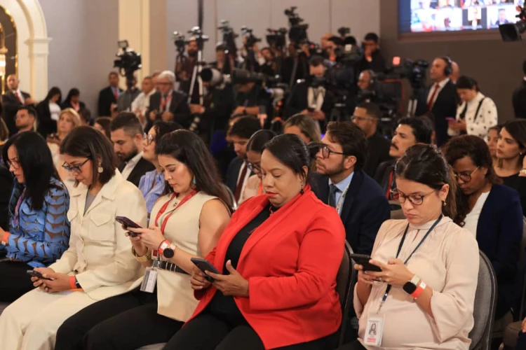 Venezuela Devlet Başkanı, 300'den fazla ulusal ve uluslararası gazeteciyle yaptığı görüşmede, "Sosyal hareketlerin, ABD de dahil olmak üzere küresel kamuoyunun bilinçli dayanışması, Karayipler ve Latin Amerika halklarına karşı bir savaş fikrini reddediyor" dedi.