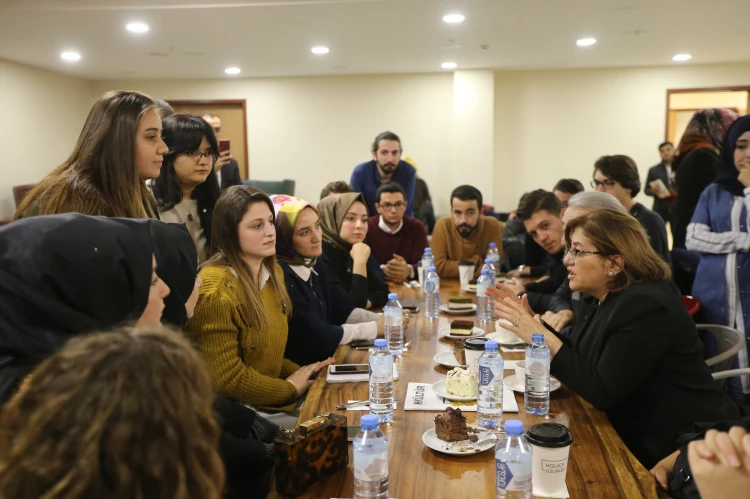 Öğrencilere hitabında hem bir belediye başkanı hem de bir anne gözüyle seslenen Şahin, “Ben dört yıl bilimde, eğitimde kendimi yetiştireceğim ama aynı zamanda kültürde, sosyal, spor alanında da sanat alanında da kendimi bir büyük şehirde yetiştirmek istiyorum dediğinizde işte tam da Öğrenci Dostu Gaziantep için burayı tercih etmenizi bir başkan olarak bir ebeveyn olarak bakarak söylüyorum” ifadelerini kullandı.