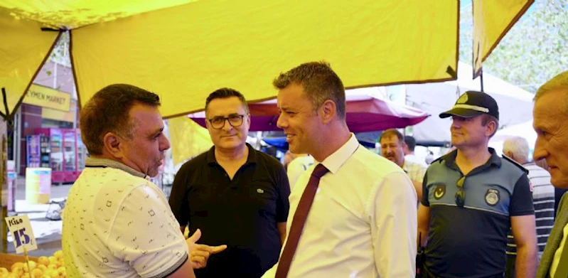 Pazar tezgâhlarını tek tek gezen ve esnafa hayırlı işler dileklerini ileten Başkan Sarıkurt, esnafın sorunlarını ve taleplerini dinledi. Alışveriş yapan vatandaşlarla da sohbet eden Sarıkurt, piyasadaki güncel durumu ve vatandaşın beklentilerini yakından takip etti.