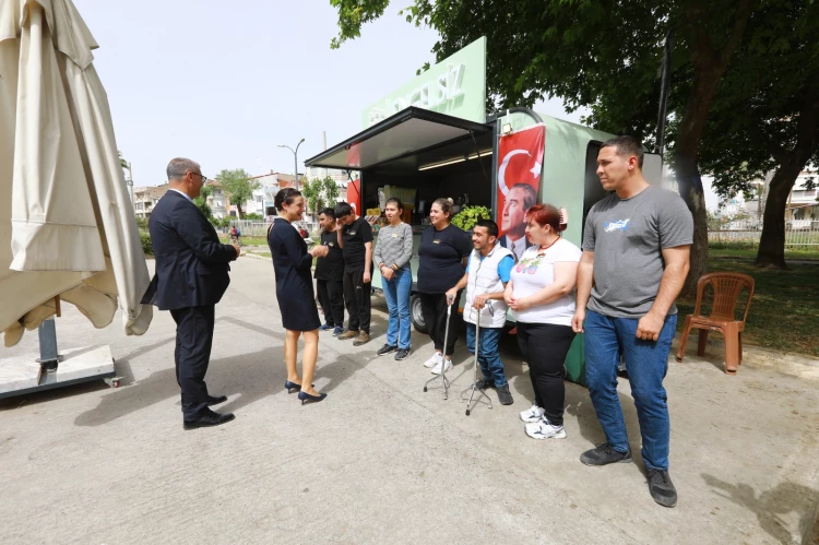 İzmir'de Efes Selçuk Belediye Başkanı Filiz Ceritoğlu Sengel, Engelsiz Kafe’de çalışan gençleri ziyaret etti.