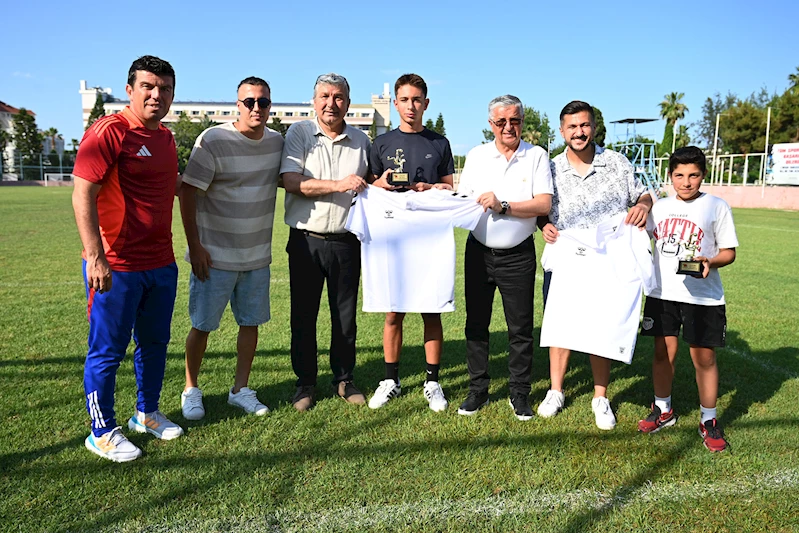Mangal sonrası Başkan Topaloğlu, Kemer Belediye Merkez Spor U15 Takımında forma giyen ve kendi liginde 44 maçta 49 gol atarak gol kralı olan Furkan Özdağ ile U12 Liginde oynadığı 12 maçta 13 gol atarak gol kralı olan Altuğ Kerem Çelik'e plaket ve tişört hediye ederek hatıra fotoğrafı çektirdi.