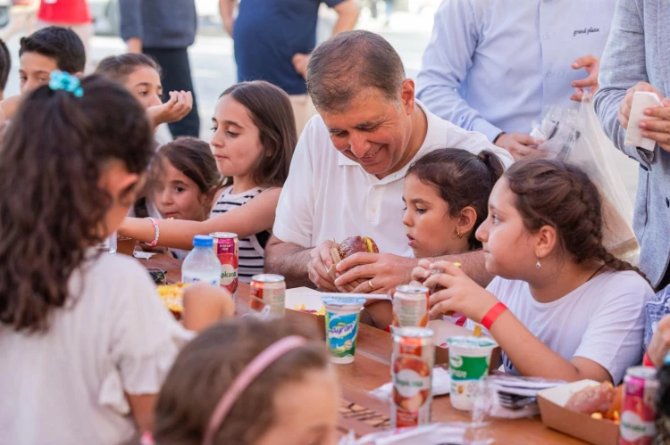 İzmir Büyükşehir Belediyesi, 94. İzmir Enternasyonal Fuarı’nın (İEF) üçüncü gününde İzmirli minikleri ağırladı. İzmir Büyükşehir Belediyesi Sosyal Hizmetler Dairesi Başkanlığı’nın Buca Göksu, Konak Ballıkuyu ve 1. Kadriye mahallelerinde bulunan Dayanışma Noktaları’ndan hizmet alan 27 anne ve farklı yaş gruplarından 50 çocuk fuar alanında İzmir Büyükşehir Belediye Başkanı Dr. Cemil Tugay ve eşi Öznur Tugay ile buluştu. Kültürpark’taki yeme içme alanında düzenlenen buluşmada Başkan Dr. Cemil Tugay’a İzmir Büyükşehir Belediyesi Genel Sekreter Yardımcısı Prof. Dr. Pınar Okyay ve Sosyal Hizmetler Dairesi Başkanı Ela Hızlı eşlik etti.
