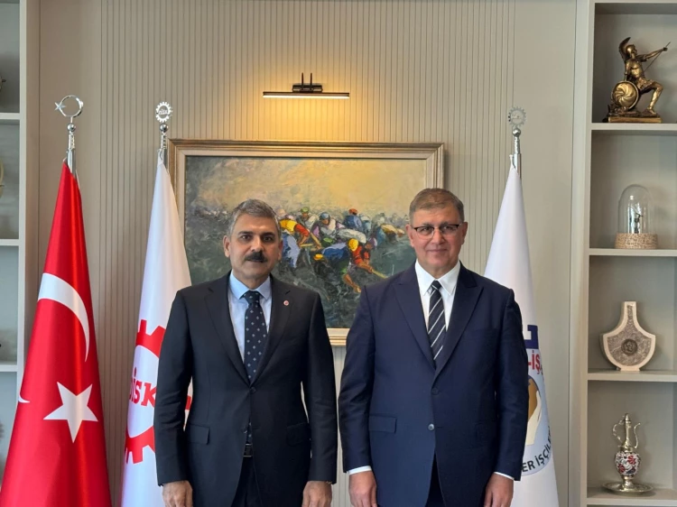 Ziyarette Belediye- İş Sendikası Genel Başkanı Nihat Yurdakul ile görüşen Başkan Tugay, İZDOĞA şirketinde Belediye- İş ile 26 Mart 2024 tarihinde imzalanan toplu iş sözleşmesine ilişkin belediyenin uyarlama taleplerini konuştu.